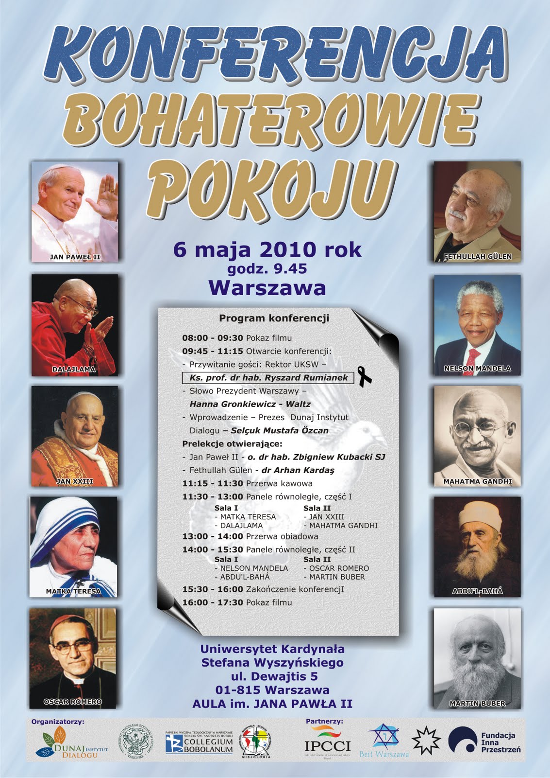 Konferencja miała zostać otwarta słowem Jego Magnificencji ks. prof. dr hab. Ryszarda Rumianka, rektora UKSW, tragicznie zmarłego w Smoleńsku. Wydarzenie rozpocznie Prezydent Warszawy Hanna Gronkiewicz-Waltz.